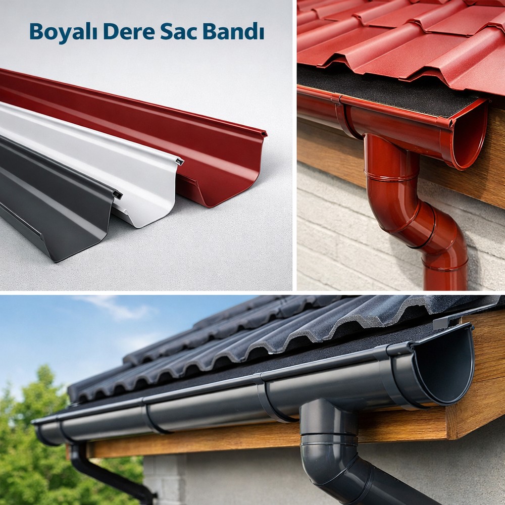 Boyalı dere sac bandı, çatı ve cephe uygulamalarında su tahliyesini güvenli şekilde yönlendirmek için kullanılır. Dayanıklı boyalı yüzeyi sayesinde uzun ömürlü ve estetik bir çözümdür.
